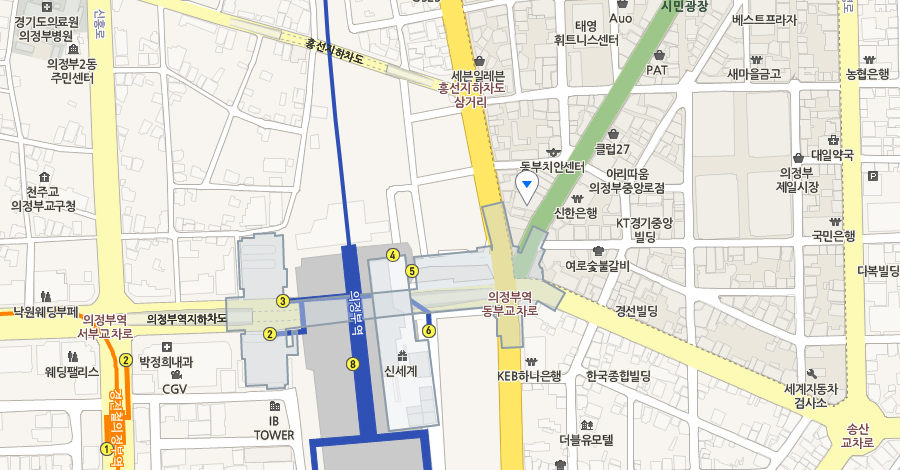 대중교통 정보 : 의정부역 동부광장출구 (차없는거리 행복로 신한은행 맞은편 아트박스 건물 3층)