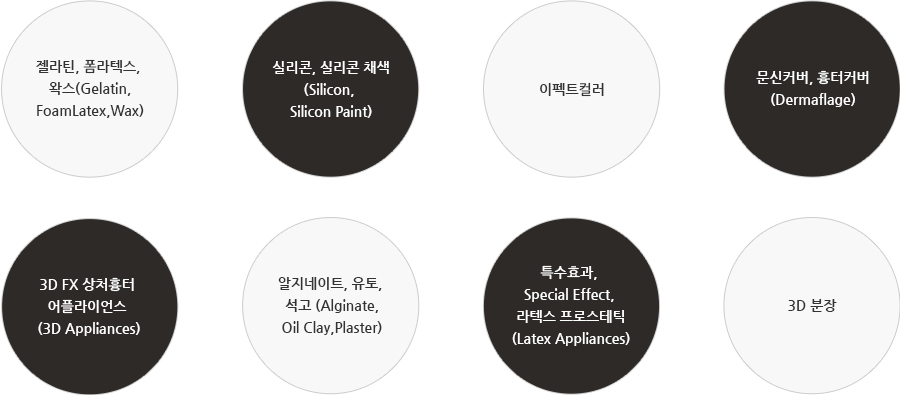 교육내용 : 무대분장 | 기초특수분장 | 영상분장 | 캐릭터분장